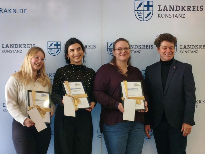 Für hervorragende schulische Leistungen wurden Teona Hamann (Notendurchschnitt 1,0) und Nina Braun (1,33) ausgezeichnet. Einen sozialbezogenen Preis erhielt Iris Reiner für ihr außergewöhnliches Engagement und ihre Hilfsbereitschaft während der Ausbildung. Die Preisträgerinnen erhielten eine Urkunde und einen 100-Euro-Gutschein des Konstanzer Treffpunkts.